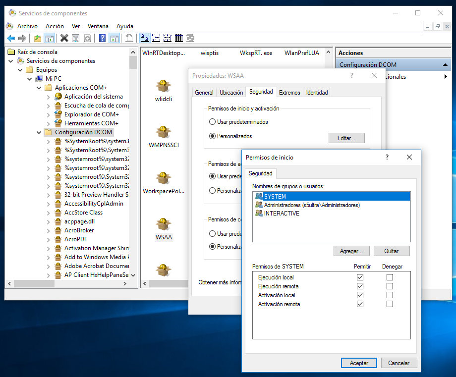 En ciertos servidores (Windows 7 o superior), dependiendo de la configuración, debe permitir inicio y activación de los componentes.