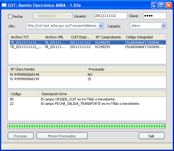 - Testing: http://cot.test.arba.gov.ar/TransporteBienes/SeguridadCliente/presentarRemitos.do